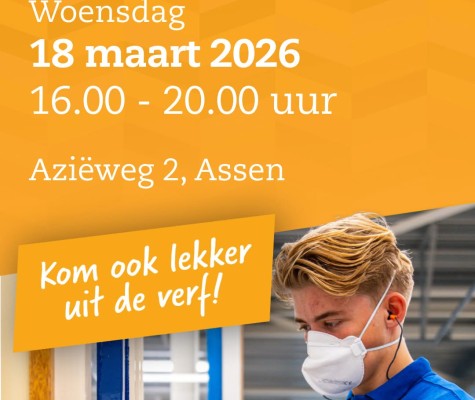 Ga je kijken op de open dag op 18 maart? Welkom!1 dag/week studeren in Assen en 4 dagen/week werken bij Sommer Schilderwerken b.v., goede combinatie π
